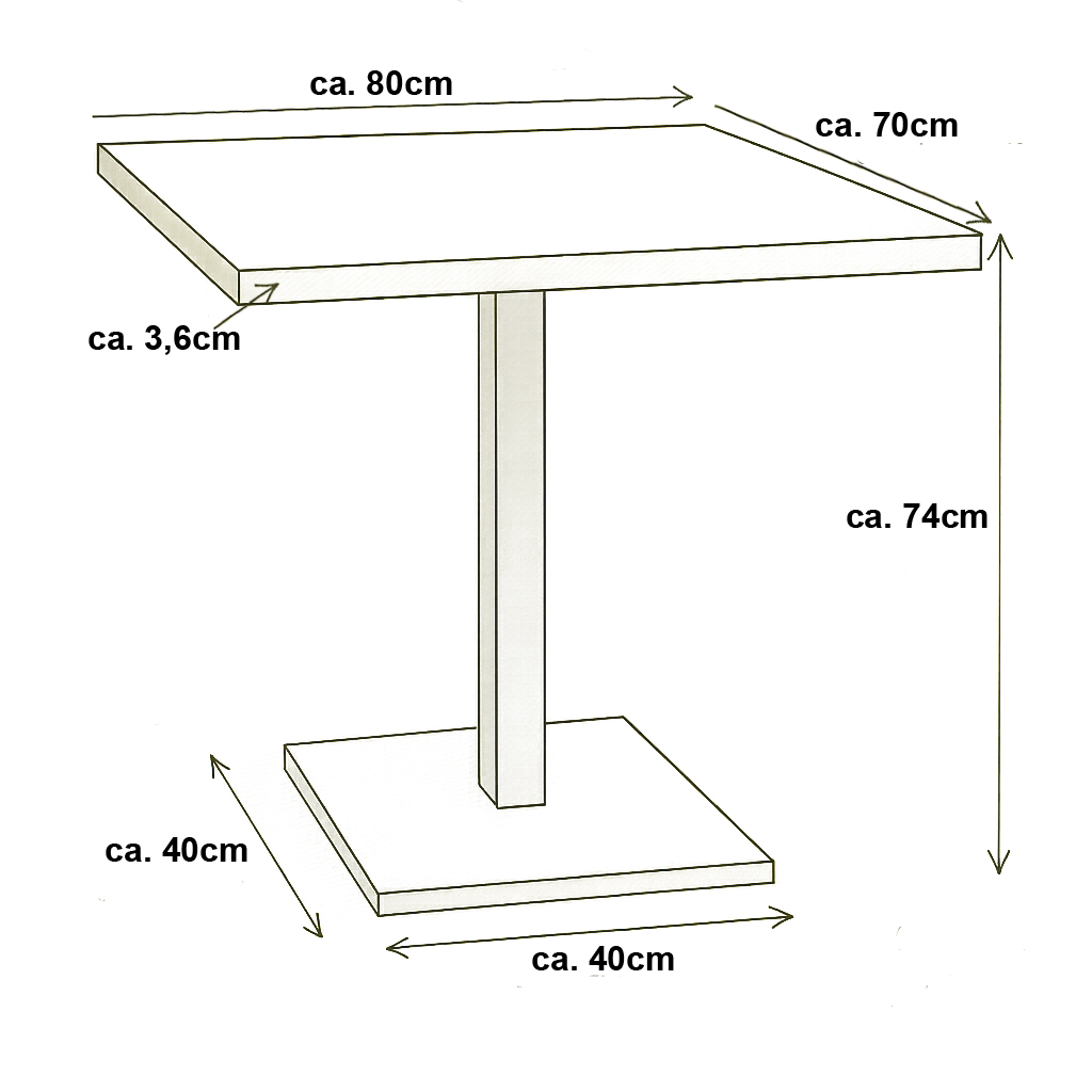 1+2 Restaurant Set 80x70x3,6cm Grace Hotel Bistro Tischbein Stühle Gastronomie Möbel