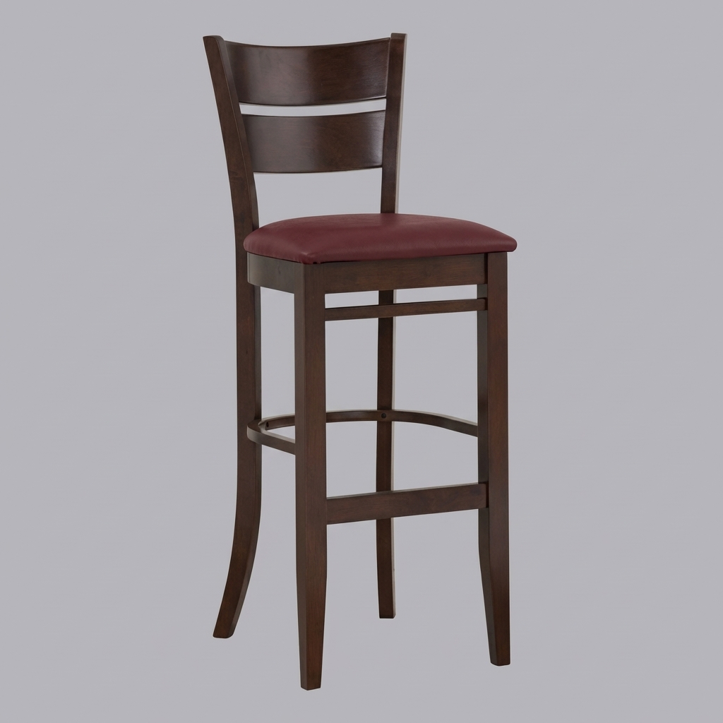 Das solide Vollholzgestell in dunkelbrauner Lackierung sorgt für eine edle Optik und gleichzeitig für hohe Stabilität im professionellen Gastronomiebetrieb. Die großzügige Sitzfläche mit strapazierfähigem Kunstlederbezug bietet Gästen optimalen Sitzkomfort und ist besonders pflegeleicht – ideal für stark frequentierte Restaurants oder Bars.