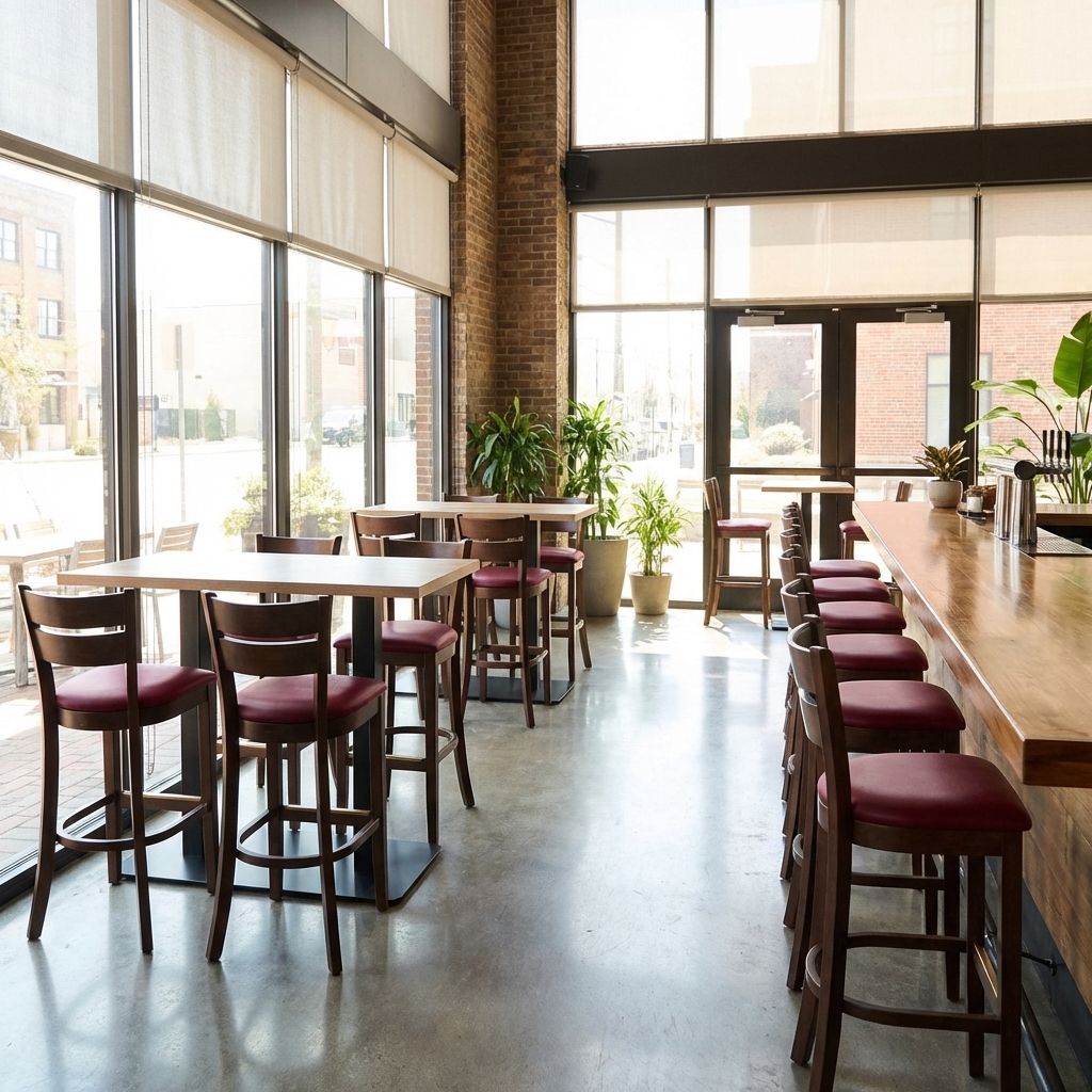 Durch seine ergonomische Sitzhöhe und die robuste Verarbeitung eignet sich der Tresenstuhl Grace perfekt für den täglichen Einsatz in der Gastronomie – ob an der Bar, am Tresen oder an Hochtischen.