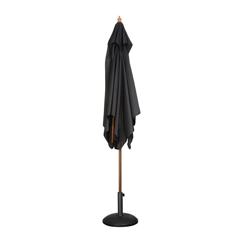 Die stabile Holzkonstruktion mit zweiteiligem Mast sorgt für festen Stand und eine elegante Optik, die perfekt zu modernen und klassischen Gastronomiekonzepten passt.