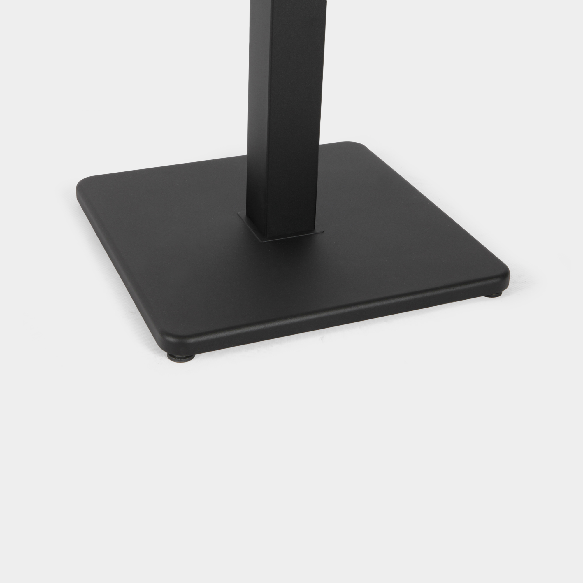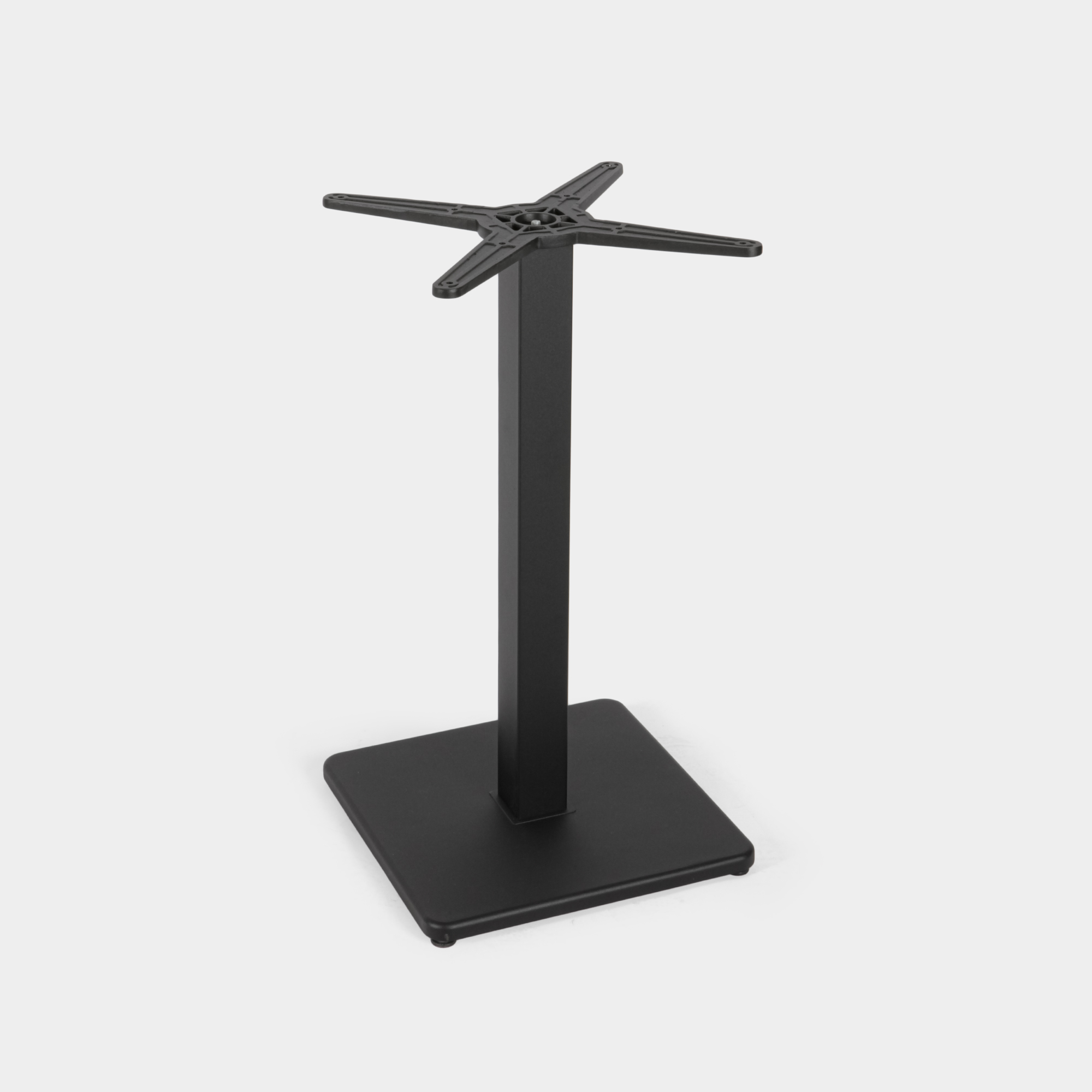 Questa struttura da tavolo è stata progettata appositamente per l'uso in strutture di ristorazione, all'interno e all'esterno. La struttura è composta da un elemento a croce e a colonna in alluminio pressofuso ad alta pressione e da una base in ghisa. La superficie è verniciata a polvere elettrostatica ed è disponibile nel colore nero, per un uso duraturo e resistente alla corrosione.