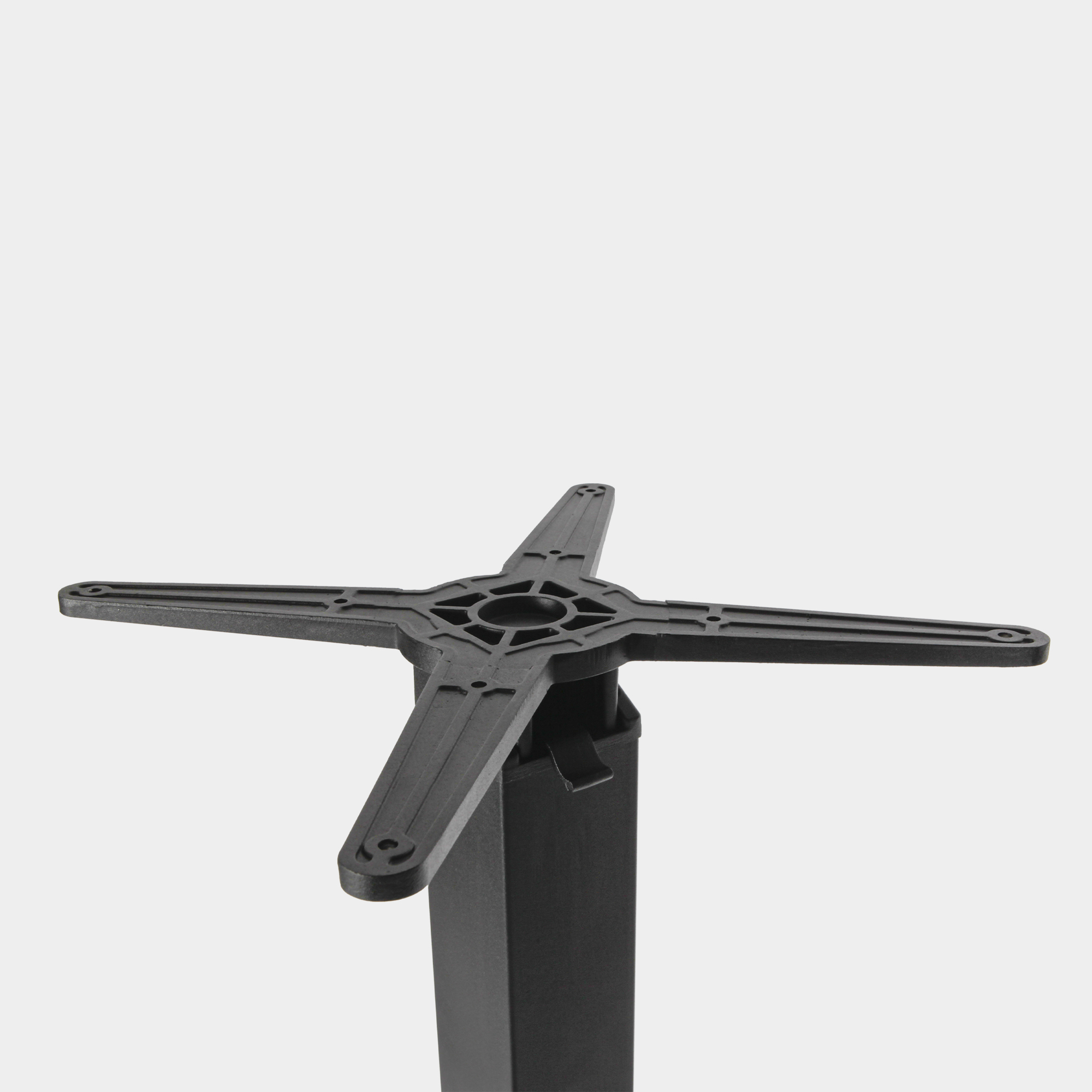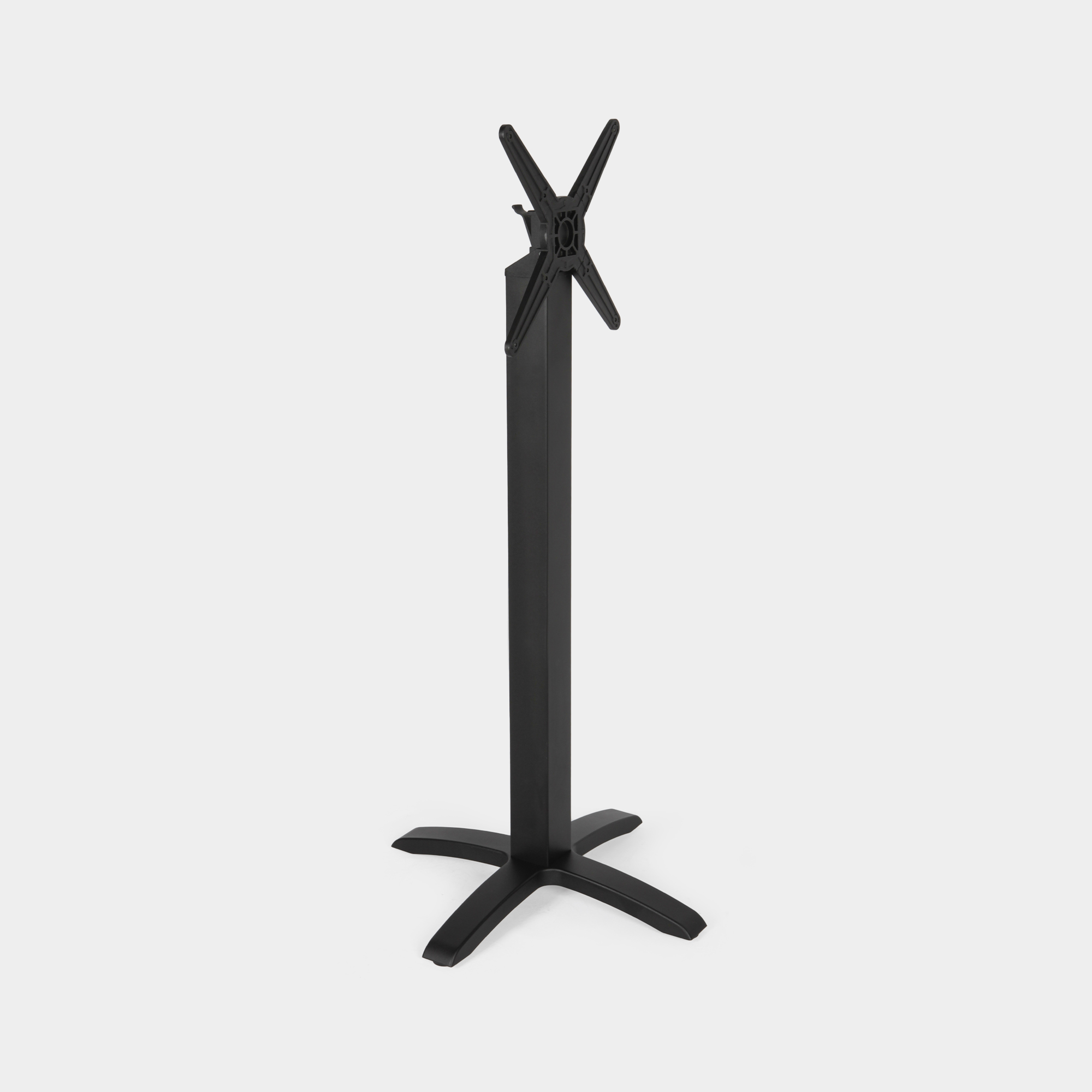 Dieses Tischgestell wurde speziell für den Einsatz in gastronomischen Einrichtungen sowie im Innen- und Außenbereich konzipiert. Die Konstruktion besteht aus einem Kreuz- und Säulenelement aus hochdruckgegossenem Aluminium sowie einem Sockel aus Gusseisen. Die Oberfläche ist mit einer elektrostatischen Pulverbeschichtung versehen und in der Farbe Schwarz erhältlich – für eine langlebige, korrosionsbeständige Nutzung.